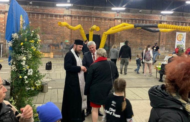 Z okazji prawosławnych Świąt Wielkanocnych odbyła się uroczystość przeznaczona dla mieszkających we Wrocławiu uchodźców z Ukrainy, połączona ze święceniem pokarmów. Na naszym charytatywnym świątecznym stole znalazło się wiele dań tradycyjnych tak dla Polski jak i Ukrainy. Był żurek, selekcja wędlin i jaj gotowanych. Nie zabrakło także pysznych ciast i owoców. Wśród charakterystycznych ukraińskich potraw, które pojawiły się na stole, znalazły się różowe szuba (śledź pod pierzynką), benderyki z mięsem, mimoza – tuńczyk z jajkiem, uzwar, czyli kompot z suszu oraz pierogi. Zadbaliśmy także o menu dla najmłodszych, serwując pyszne puddingi, naleśniki i słodkości.